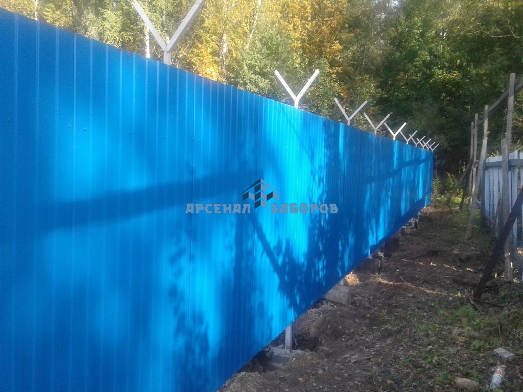 Конструкция забора из профлиста с забивными столбами