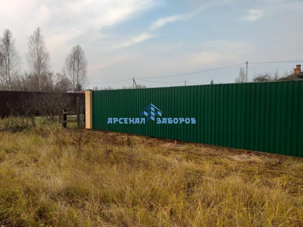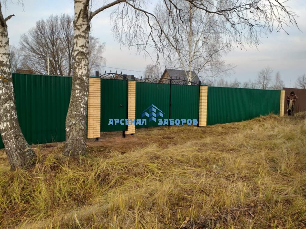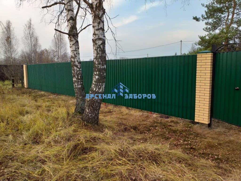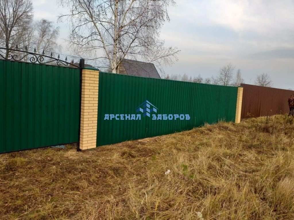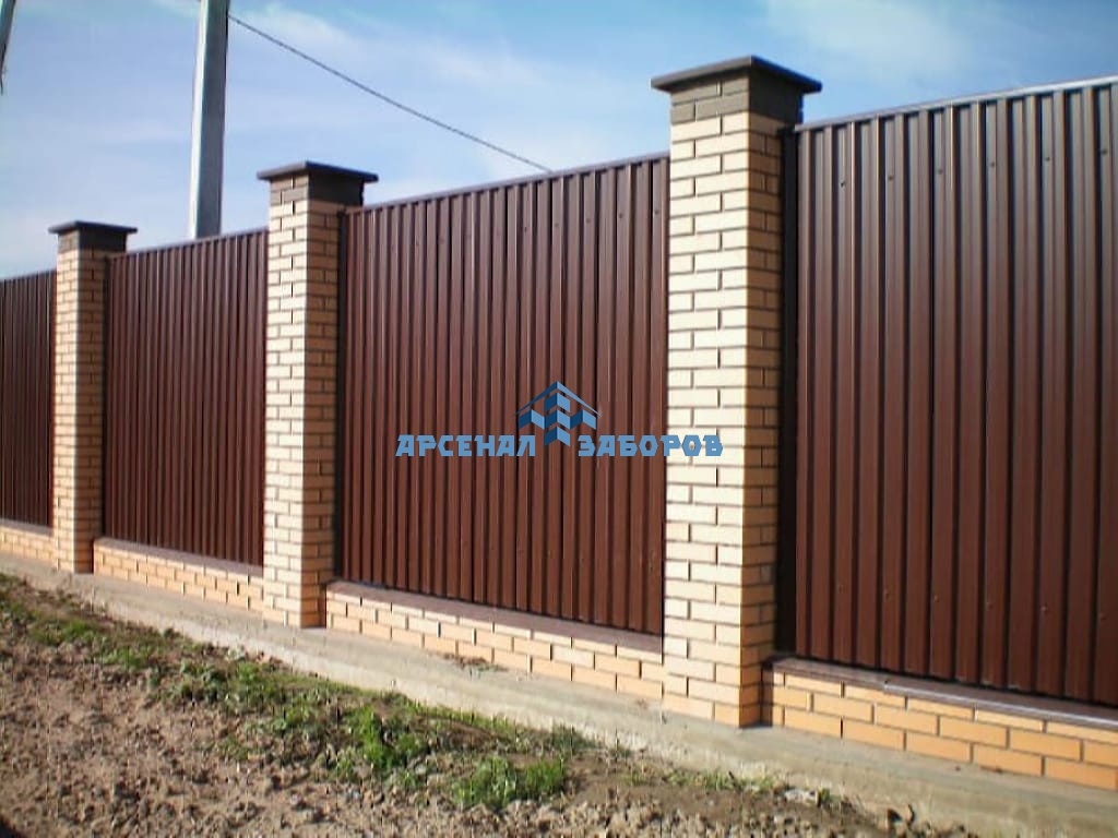 Конструкция забора из профлиста на ленточном фундаменте и с кирпичными столбами