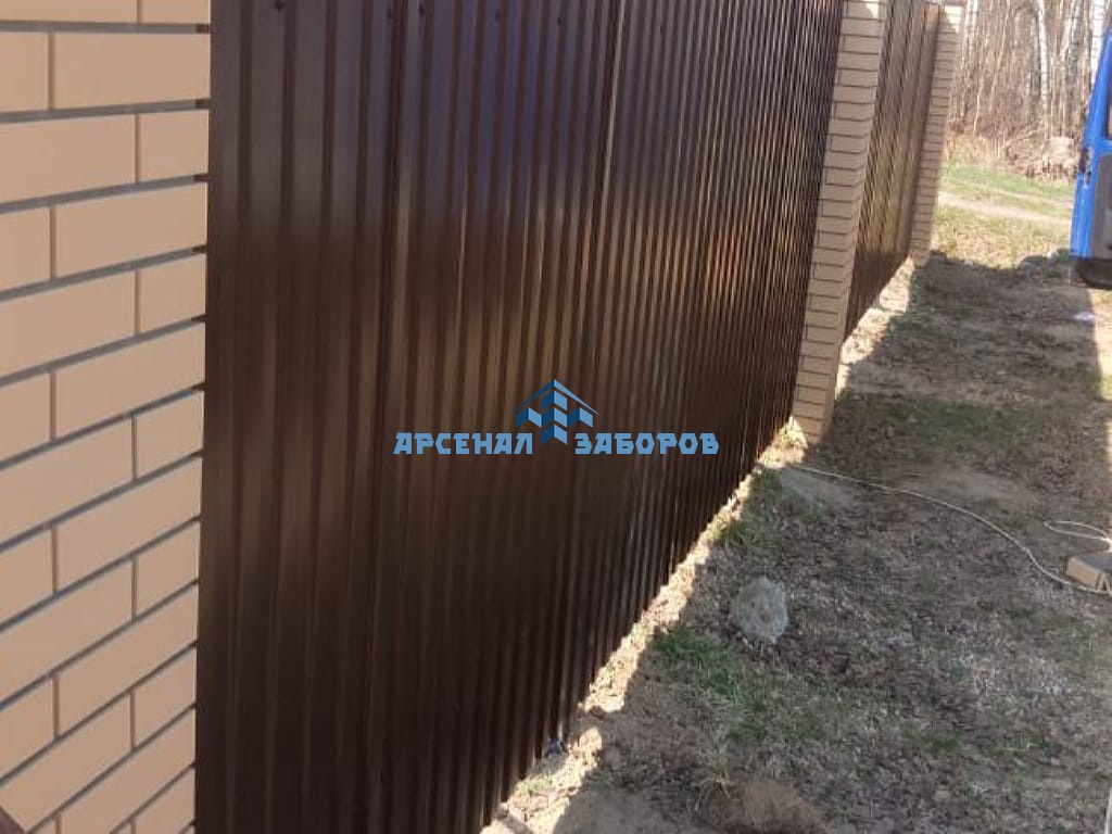 Конструкция забора из профлиста на ленточном фундаменте и с кирпичными столбами