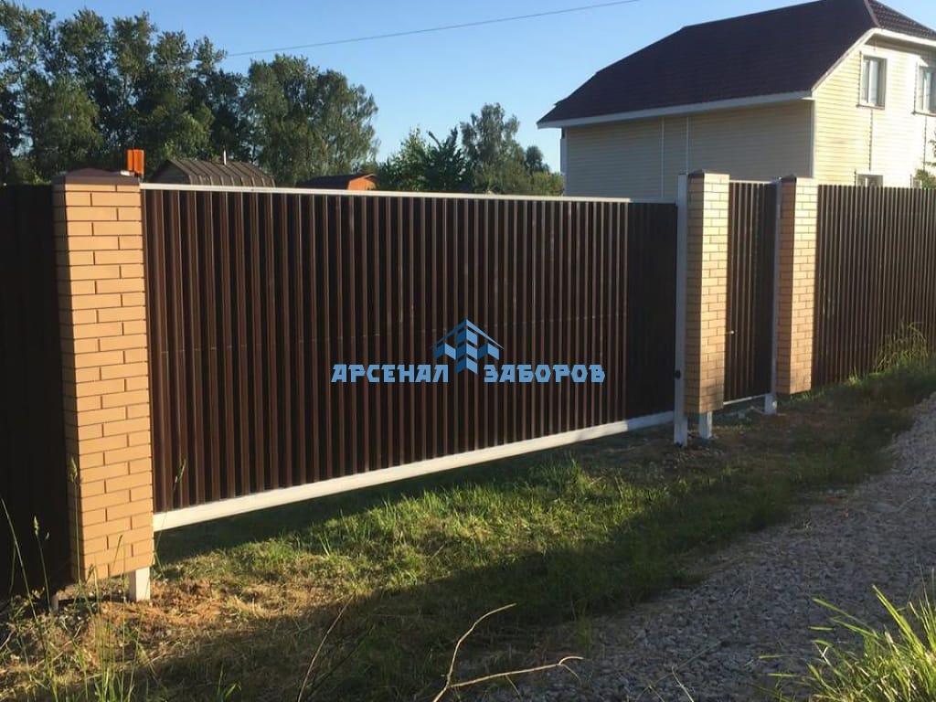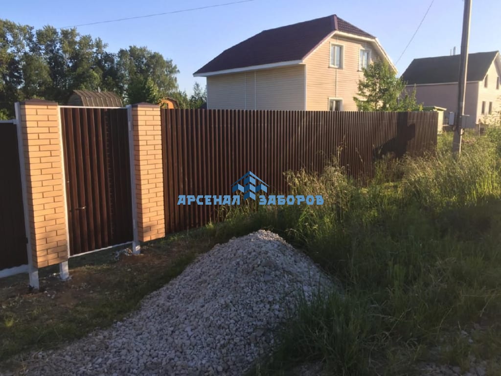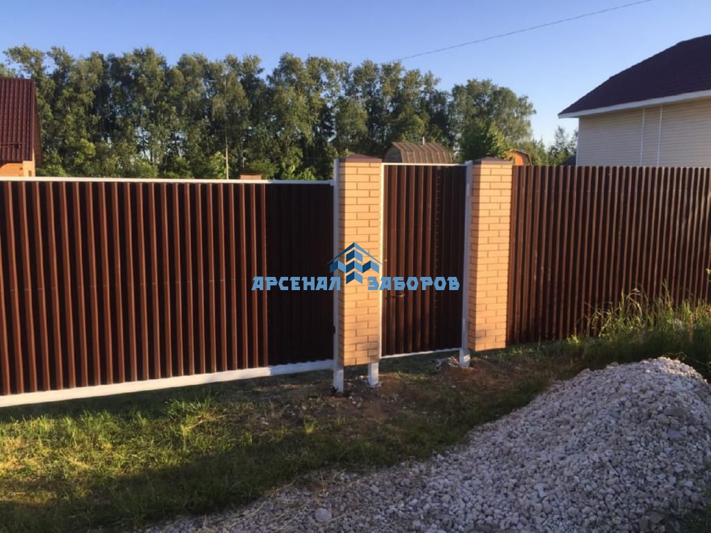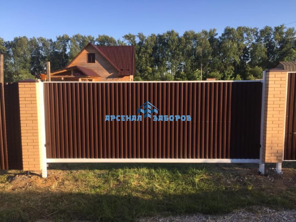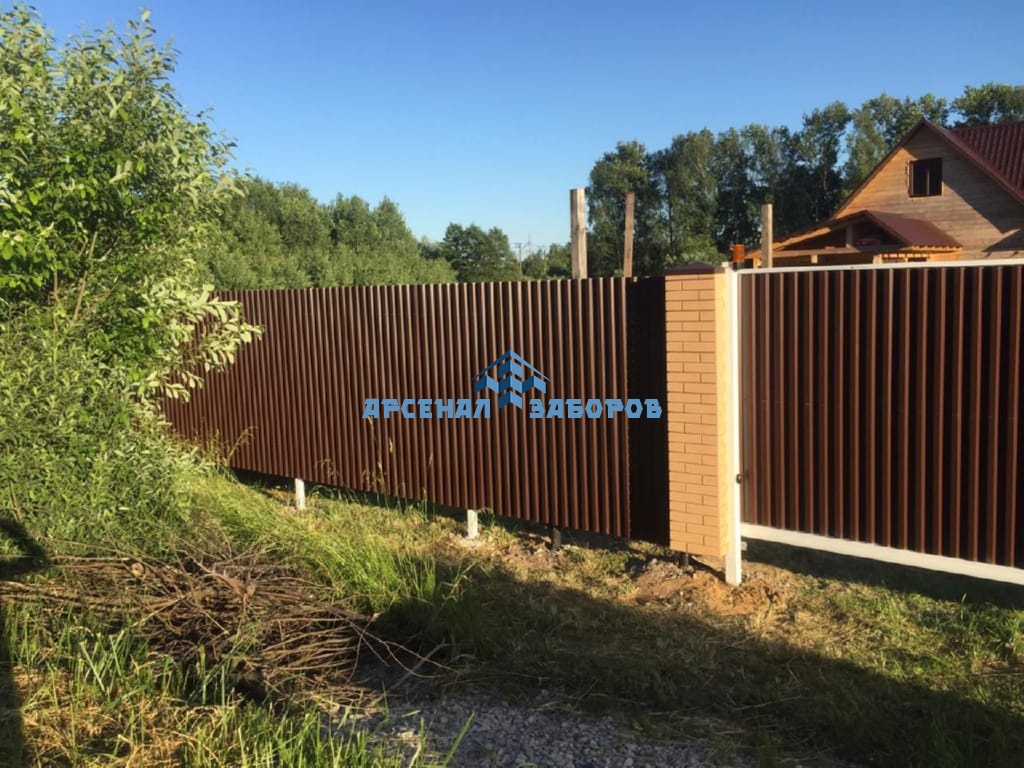 Конструкция забора из профлиста на ленточном фундаменте и с кирпичными столбами